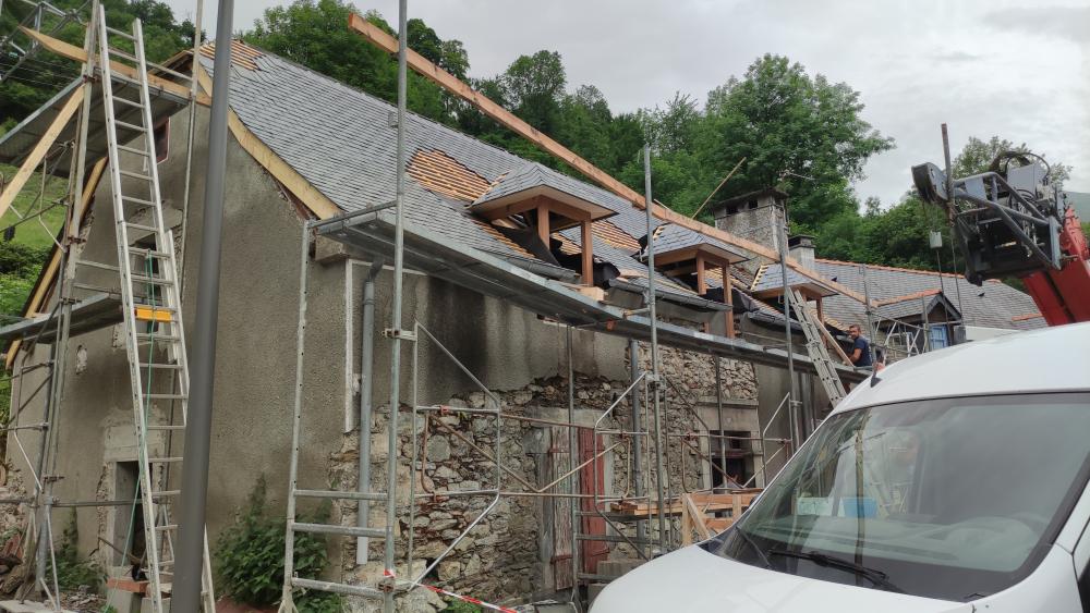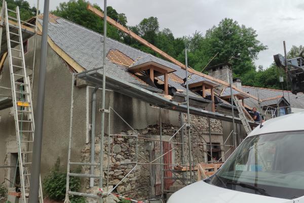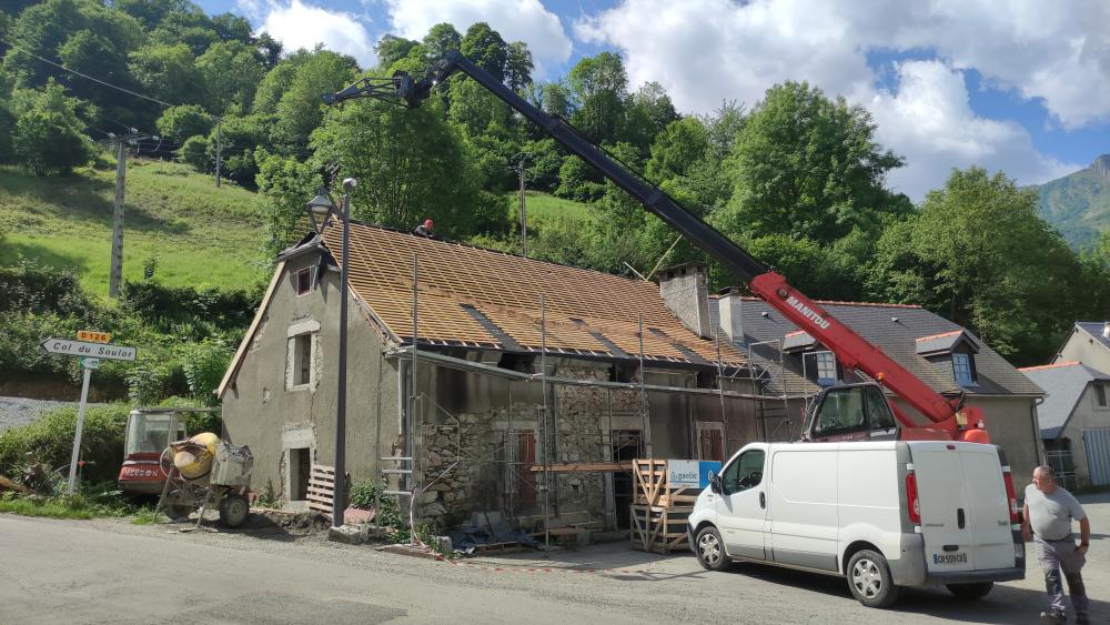 Nous avons eu le privilège de participer à la renaissance d’un bâtiment emblématique du village d’Arbéost : un ancien café, aujourd’hui entièrement réhabilité. Ce chantier a mobilisé un large éventail de savoir-faire, mêlant techniques traditionnelles et solutions modernes, afin de préserver le caractère patrimonial tout en répondant aux exigences actuelles de confort et de sécurité.